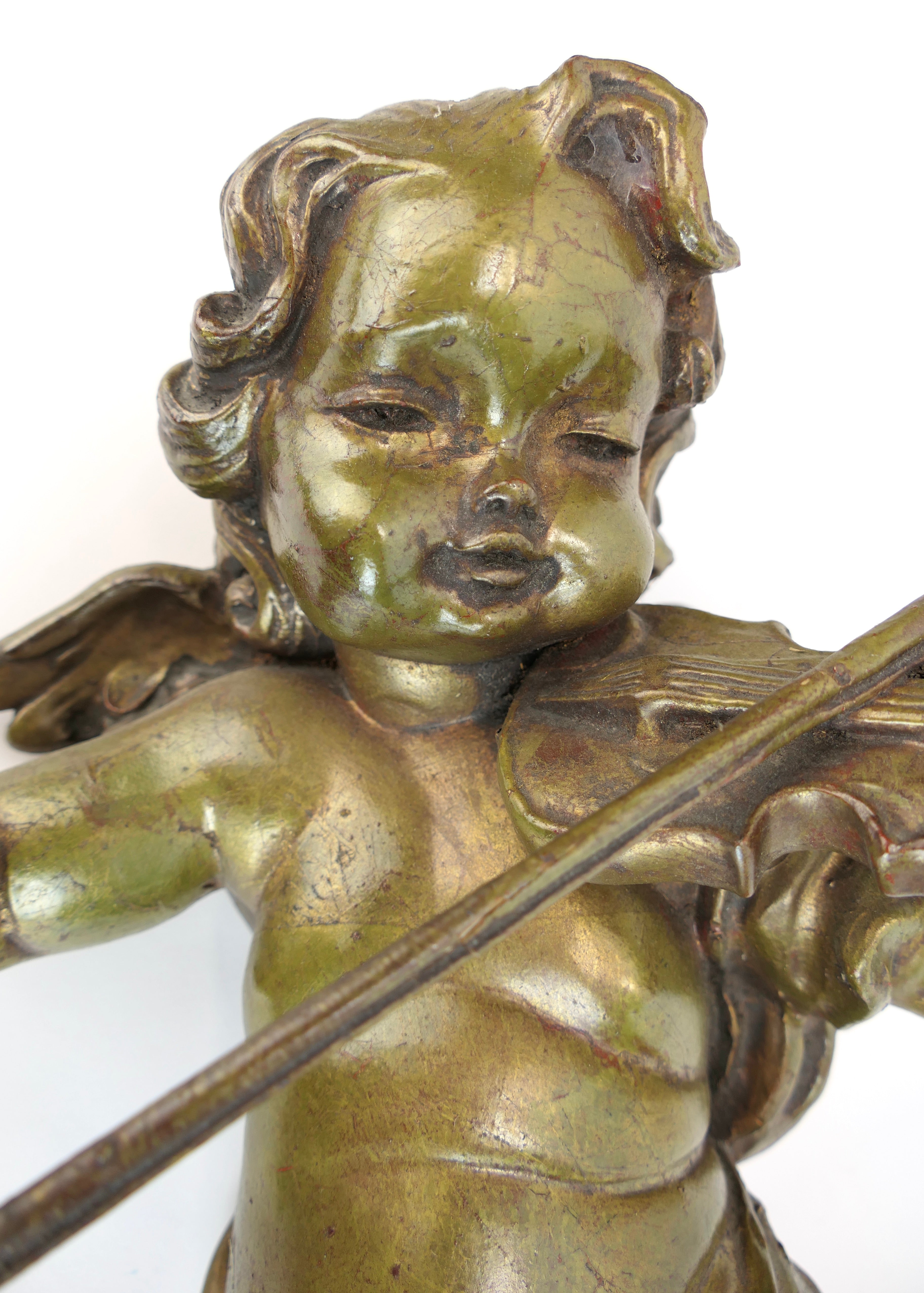 [Violin] [Cherub]. Vintage Italian Classical Gilt Figural Musician Cherub Wall Sculpture.