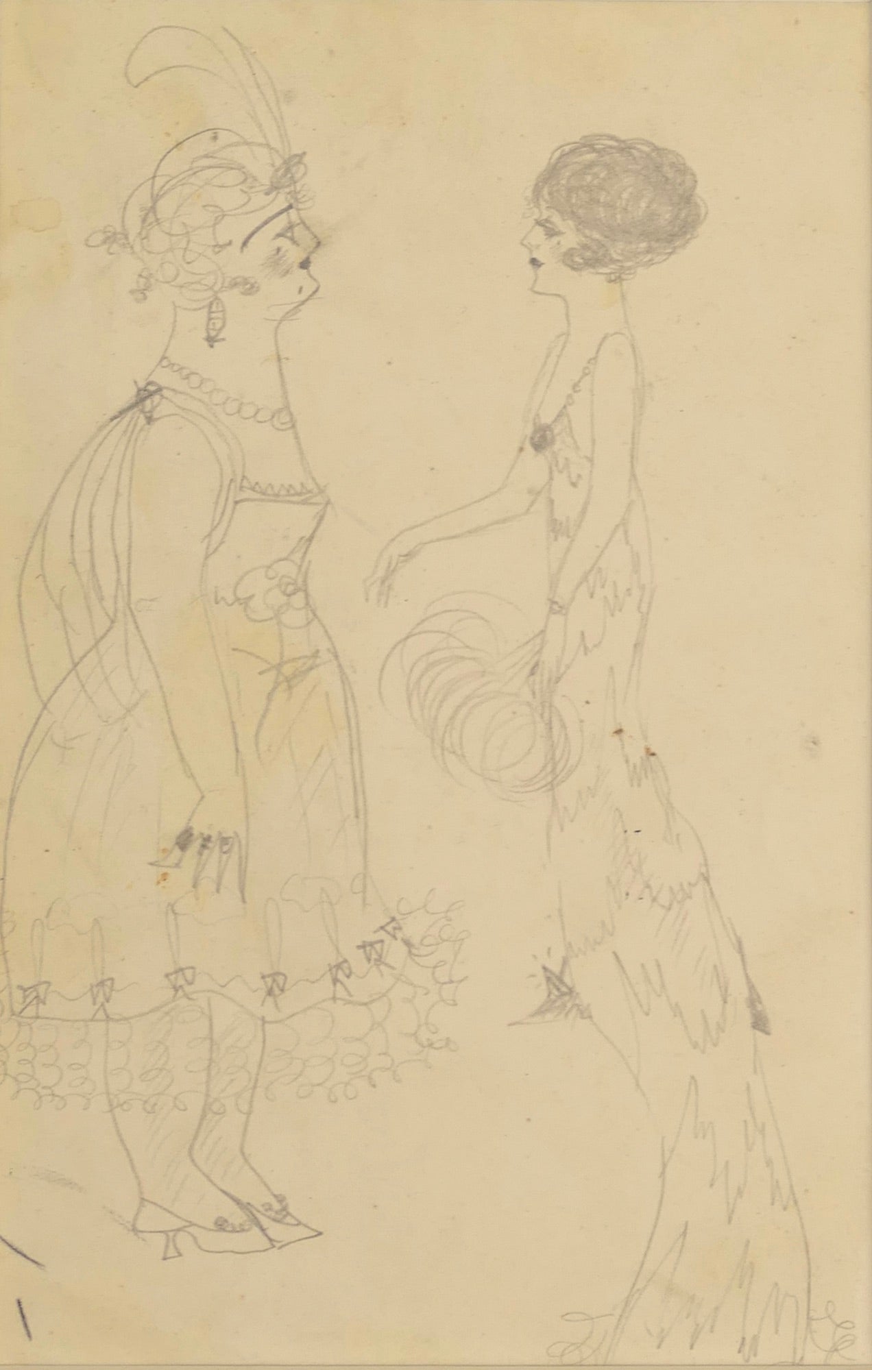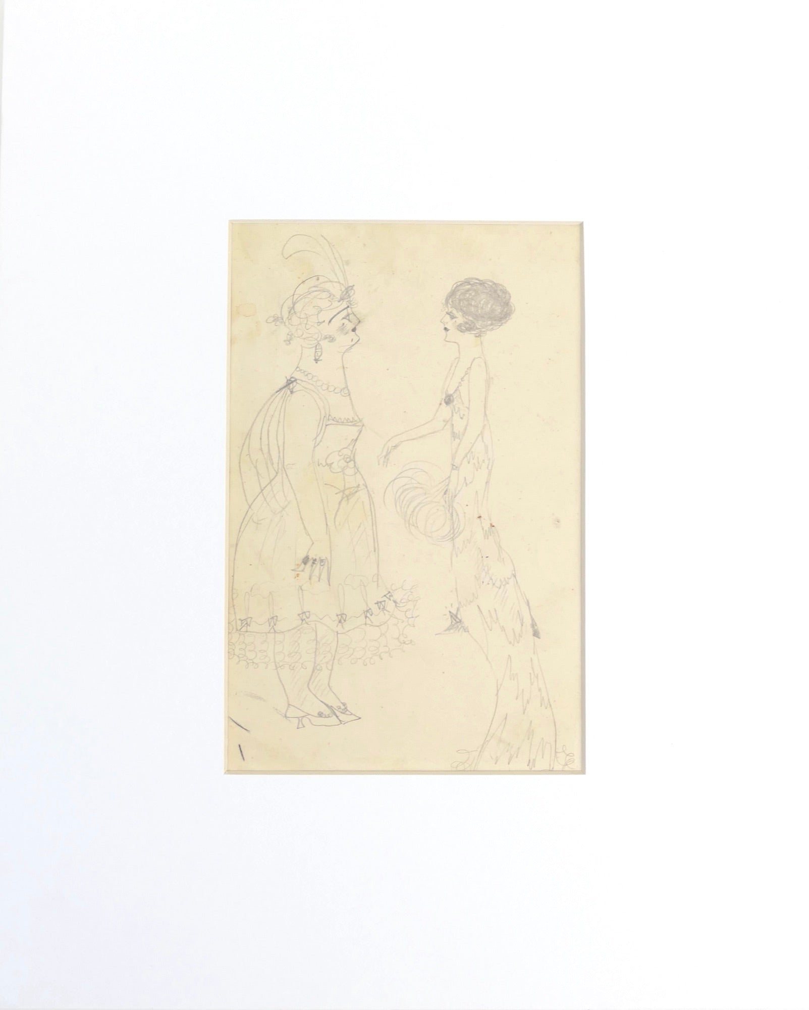 3. Two figures in elaborate gowns with feathers. 4.5 x 7.5 inches. Inscribed on the mount verso by Maddox "Nadelman" and "F. Maddox / 12 Norfield Road / Weston, CT...." $3500.00