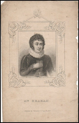 Braham, John. (c. 1774-1856). 1824 Stipple Engraving.