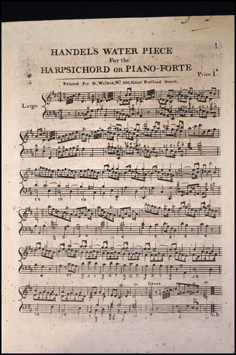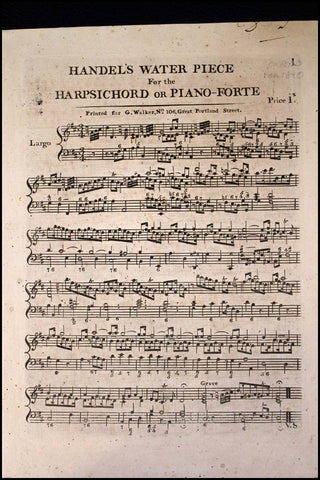Handel, George Frederic. (1685-1759). Handel's Water Piece for the Harpsichord or Piano-Forte. London: G. Walker. [ca. 1810].