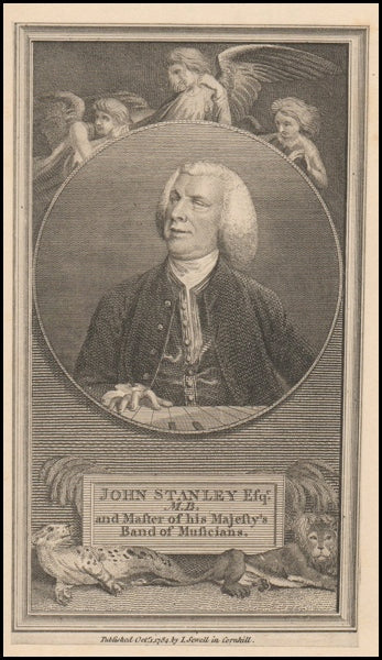 "After Handel died, Stanley and J. C. Smith the younger directed the oratorio seasons at Covent Garden and Drury Lane. Seven years before his death, Stanley succeeded Boyce as Master of the King's Music....According to Burney, Stanley was a ‘neat, pleasing, and accurate performer, … a natural and agreeable composer, and an intelligent instructor.' He composed music for several dramatic pieces, including the pastoral Arcadia, or The Shepherd's Wedding (1761) for the marriage of George III and Queen Charlotte, the opera Teraminta (not performed), and three oratorios. He published three sets of organ voluntaries, and other instrumental music including a fine set of concerti grossi and six keyboard concertos." (Wendy Thompson, Oxford Companion to Music)