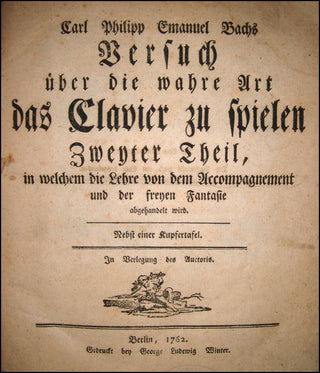 The very rare first edition of the second volume of C.P.E. Bach's influential Klavierschule, a treatise which remains an essential reference to this day and which laid the foundation for the methods of Clementi, Cramer and others.