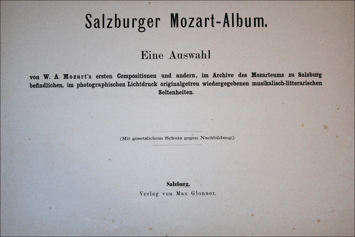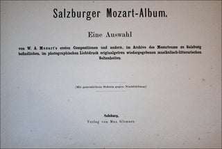 Oblong folio. Original publisher's embossed cloth gilt. 1f. (title), 1f. (half-title), 1f. text by Franz Xav. Jelinek, 11 pp. printed music, [i] (blank), [i] facsimile autograph manuscript, [i] (blank), [i] printed music, [i] (blank), 3ff. facsimile autograph manuscripts and documents, printed on one side of the leaf only. Binding somewhat shaken, spine rubbed and worn, foxing thoughout.