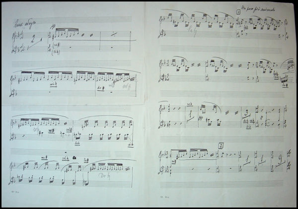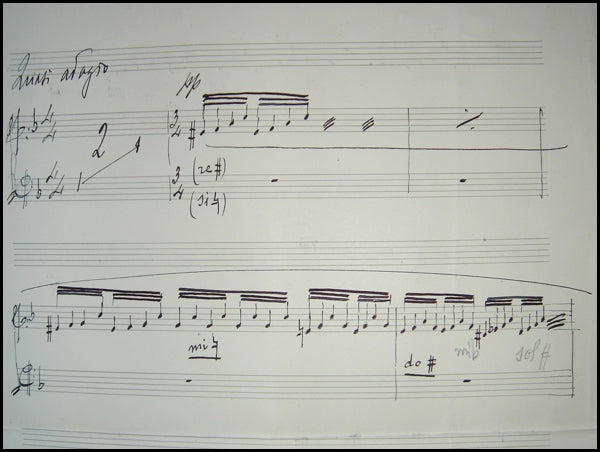 Pizzetti, Ildebrando. (1880-1968). Autograph Music Manuscript. Nine systems on 3 pages, in black ink. A reduction/arrangment for solo harp from "Abramo e Isacco." 9.4 X 13 inches, inscribed in pencil on the front. Marked "Quasi Adagio" at the head of the music. In very fine condition with a few minor creases. From the estate of the conductor Gianandrea Gavazzeni (1905 - 1996). Autograph music from Pizzetti is scarce.