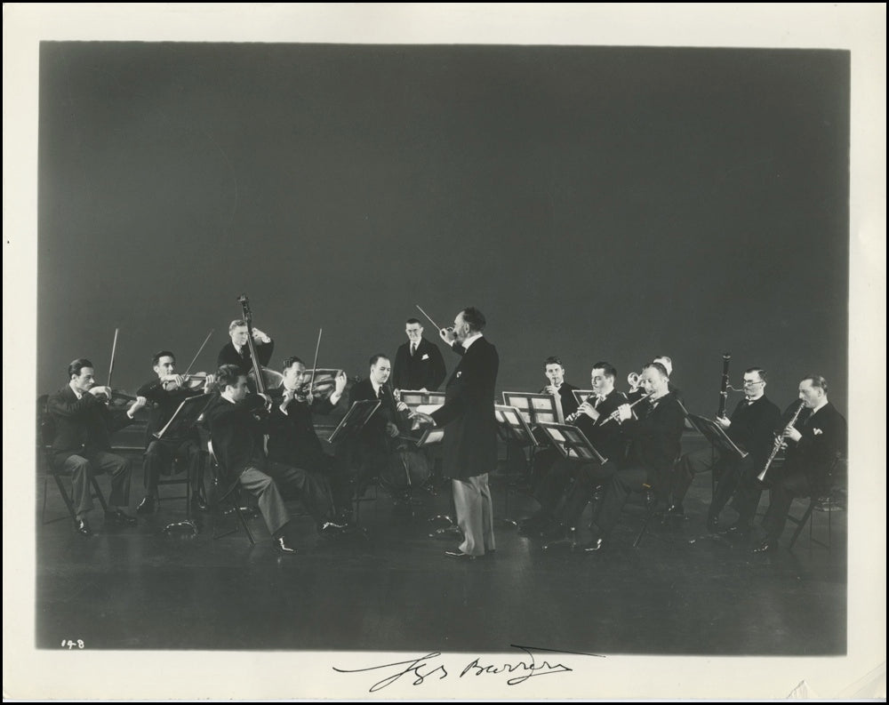 Barrère, Georges. (1876-1944). Rare Signed Photograph . Scarce signed 8 X 10 inch photograph of the highly influential flute player, shown conducting "The Barrere Little Symphony."