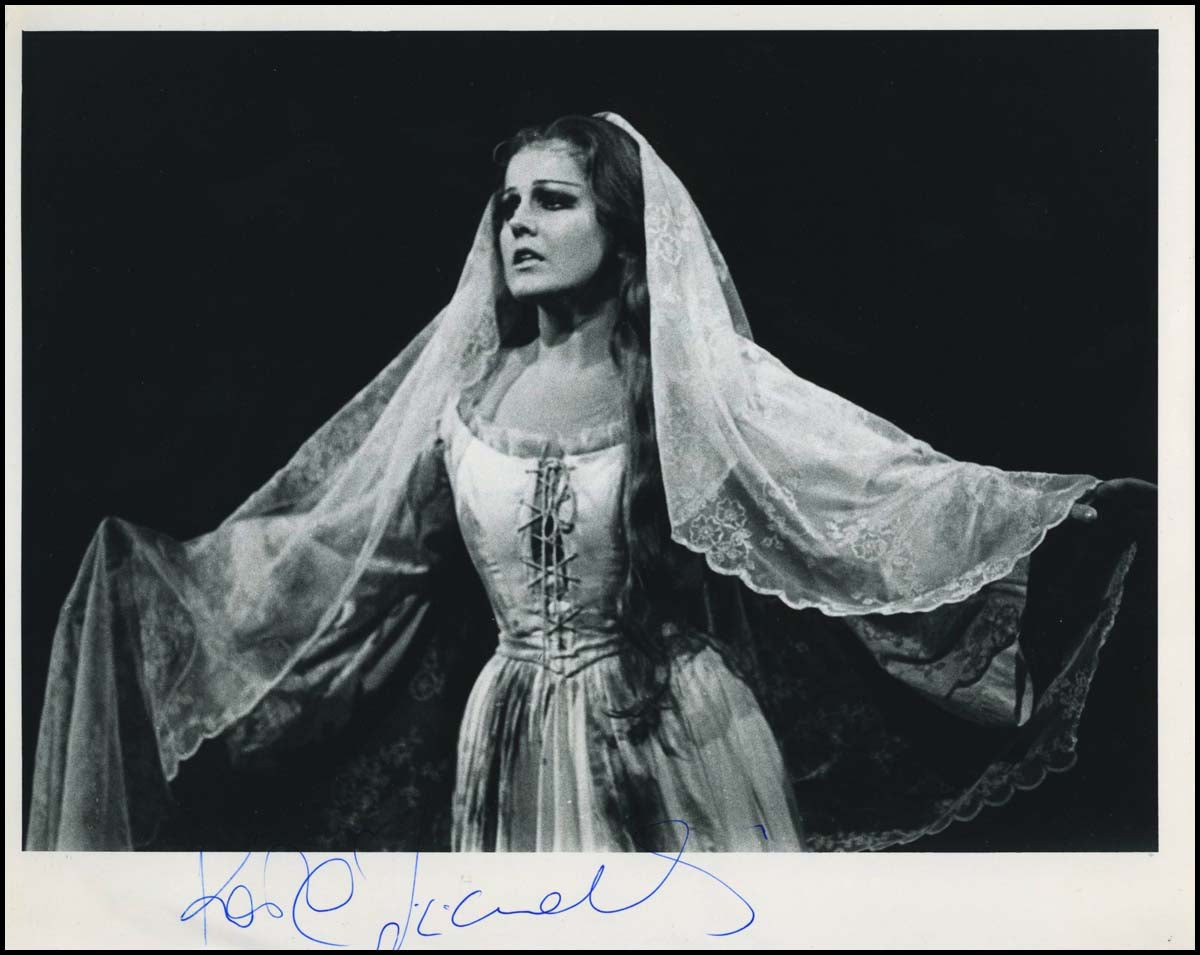 A very fine original Reg Wilson photograph of the Italian soprano, boldly signed. 20.5 x 25 cm.
