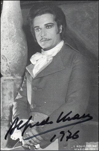 A very fine original photograph showing the distinguished Spanish tenor in Werther at the Teatro Regio di Torino, 1973. Boldly signed in 1976. 11.5 x 17.5 cm.