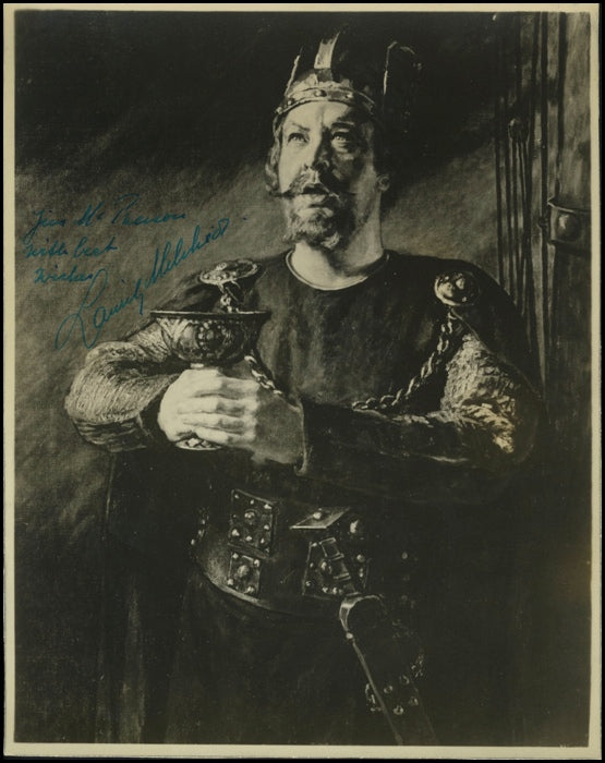 Fine signed portrait of the great heldentenor in his most celebrated role. 7.5" x 9.5" doubleweight reproduction of a painting, boldly signed and inscribed in green ink. Mounting traces on verso, else fine.