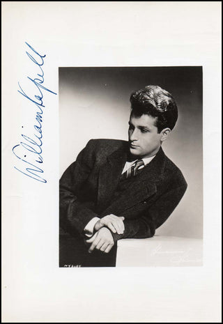 A remarkable 8 x 10 inch glossy photograph of the pianist, boldly signed "William Kapell" in blue ink and in very fine condition. Uninscribed photographs of Kapell are among the greatest prizes in the field of pianist autographs and this is a truly remarkable example.