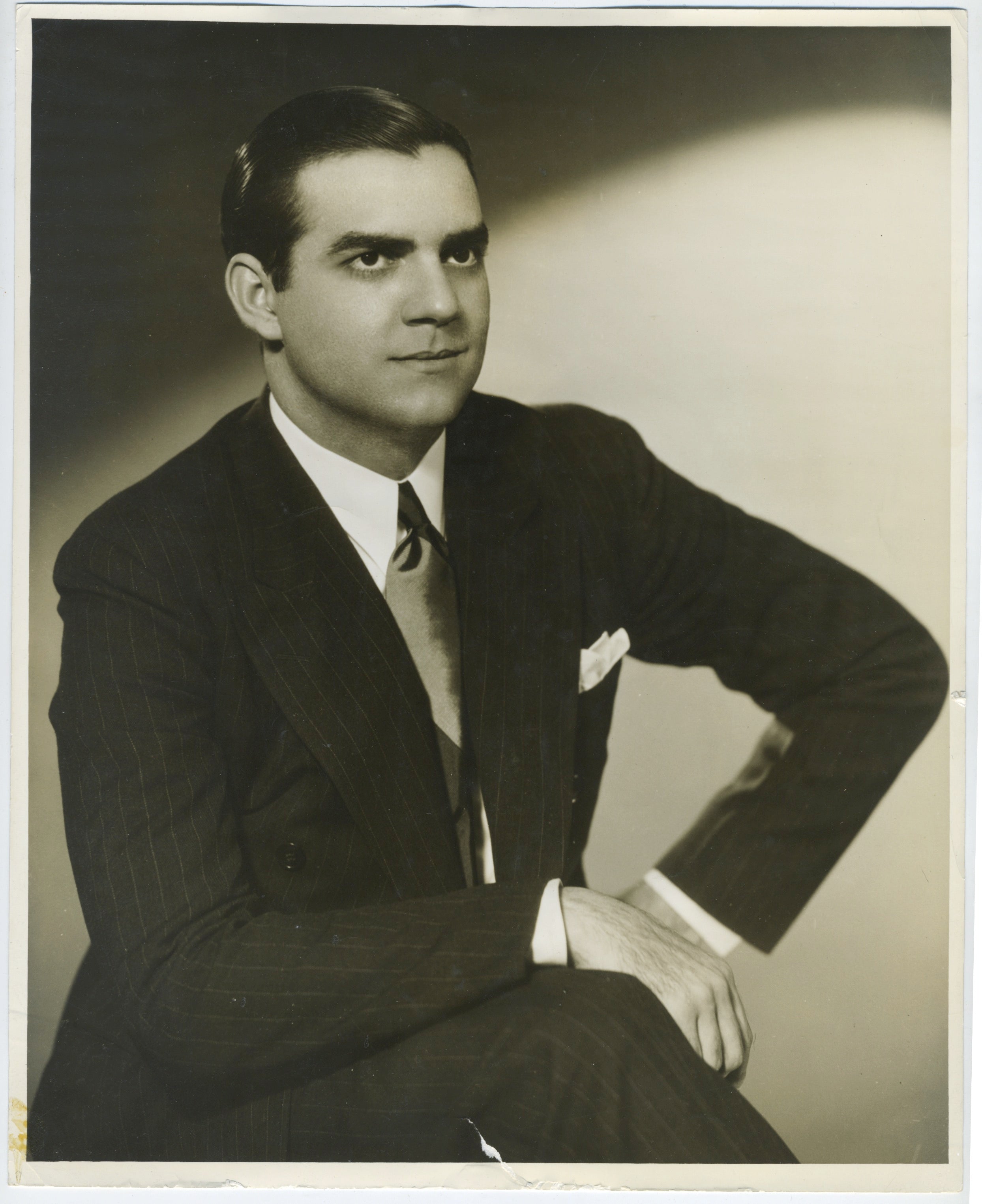 Bolet, Jorge. (1914 - 1990). Original Photograph. Handsome original portrait photograph of the great Cuban pianist, with "Oct. 1940" stamped to the verso. Small tear in lower portion, otherwise in fine condition. 8 x 10 inches (20.3 x 25.4 cm.).