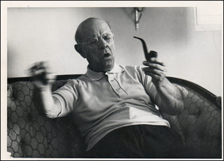 Original 1962 photograph of the great cellist, shown with his eyes closed and gesturing with his pipe. 5 x 7 inches, a few press marking on the verso, else fine. A beautiful image.