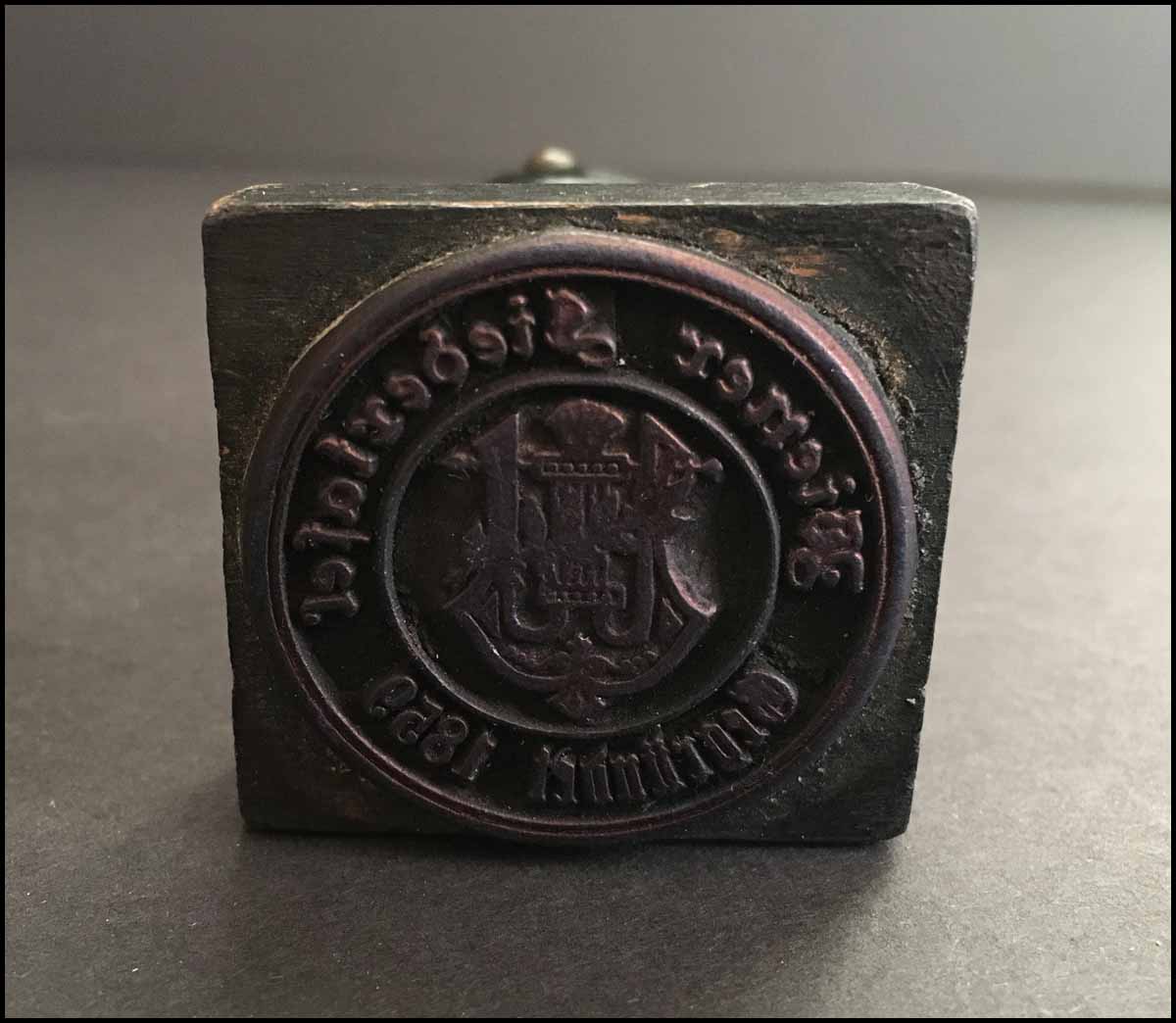 An original ink stamp with wooden handle from the famous singing association, founded in Vienna in 1859. The singing club was a central part of the city's cultural life for 75 years and performed at many important cultural and social events of the period. Johannes Brahms was an honorary member and was a juror at one of their annual competitions.
