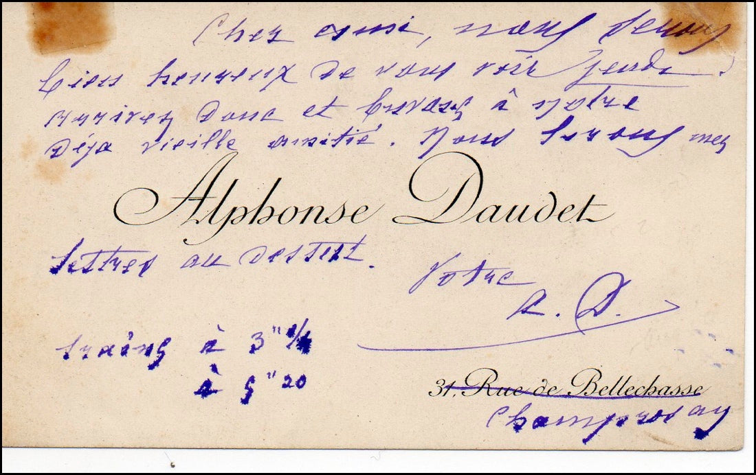 [Literature] Daudet, Alphonse. (1840 – 1897). Inscribed Visiting Card.