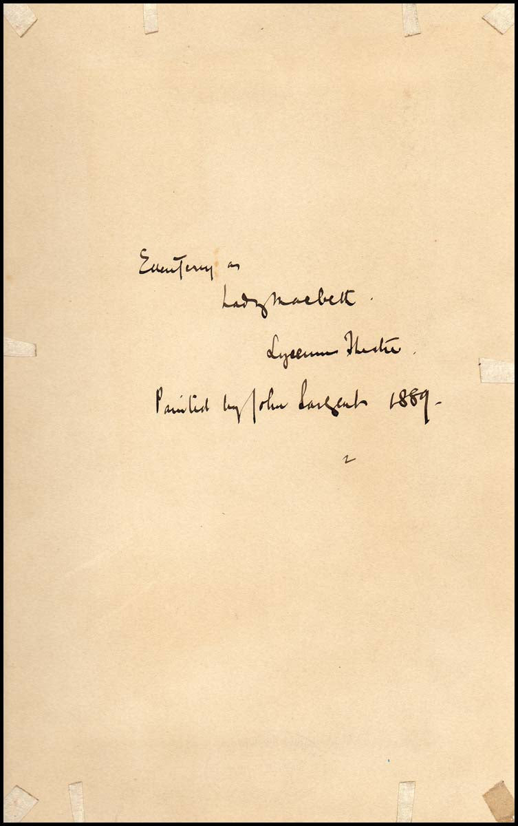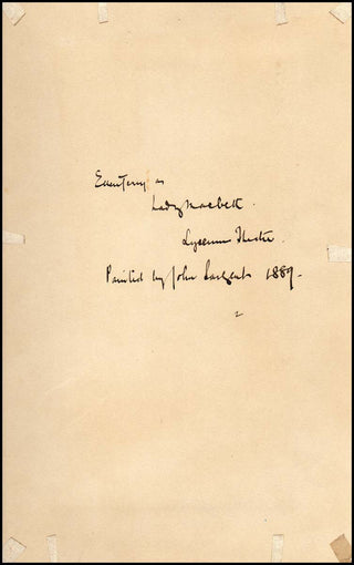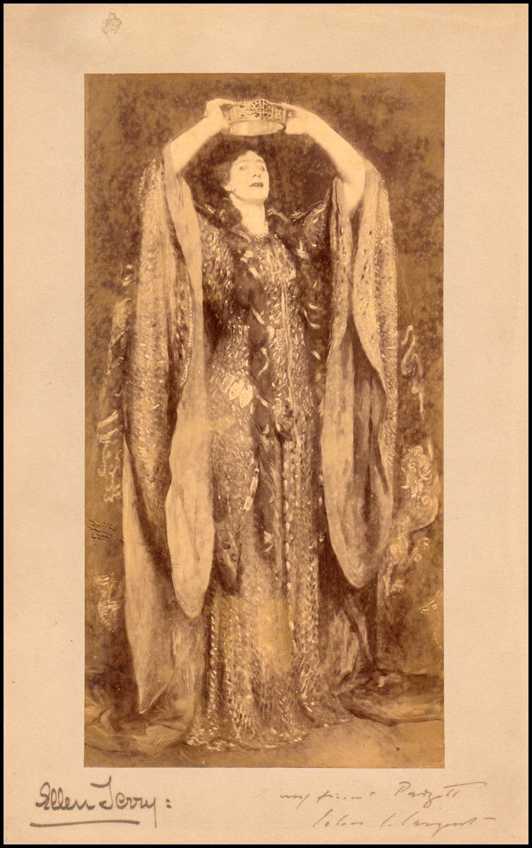 Terry, Ellen. (1847-1928) & Sargent, John Singer. (1856 –1925) . Signed Portrait. Photograph of the portrait by John Sargent of Terry as Lady Macbeth, signed on the mount by Terry and further inscribed by John Sargent, image 222 x 115mm., [ca.1889].