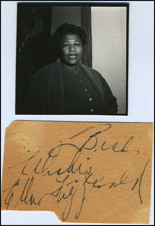 Fitzgerald, Ella. (1917–1996). Autograph Signature and Candid Photograph.