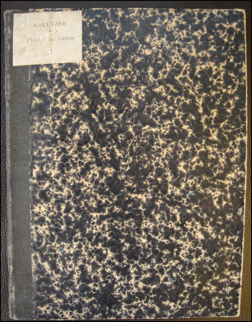 Kreutzer, Rodolphe. (1766-1831) [Braille Music] . Études pour le Violon . 23 pp. An anonymously issued mid-19th century braille publication of the historic violin etudes by Kreutzer. Printed on thick gray paper, bound in marbled paper over cloth boards. In fine condition throughout. Braille music editions of this kind are extremely rare.