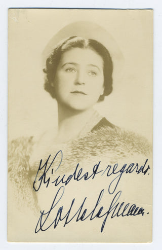 Signed portrait postcard photograph of the superlative German soprano, creator of several Strauss roles and a rare singer equally at ease in roles from Puccini, Beethoven, Wagner, as well as song repertoire. Very fine. 3.3 x 5.25 inches (8.3 x 13.3 cm.).