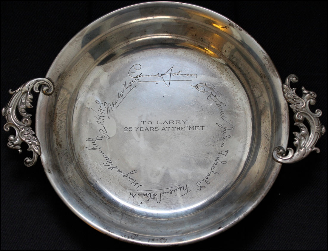Tibbett, Lawrence. (1896-1960). Lawrence Tibbett’s engraved sterling silver tray commemorating “25 Years at the Met.”.