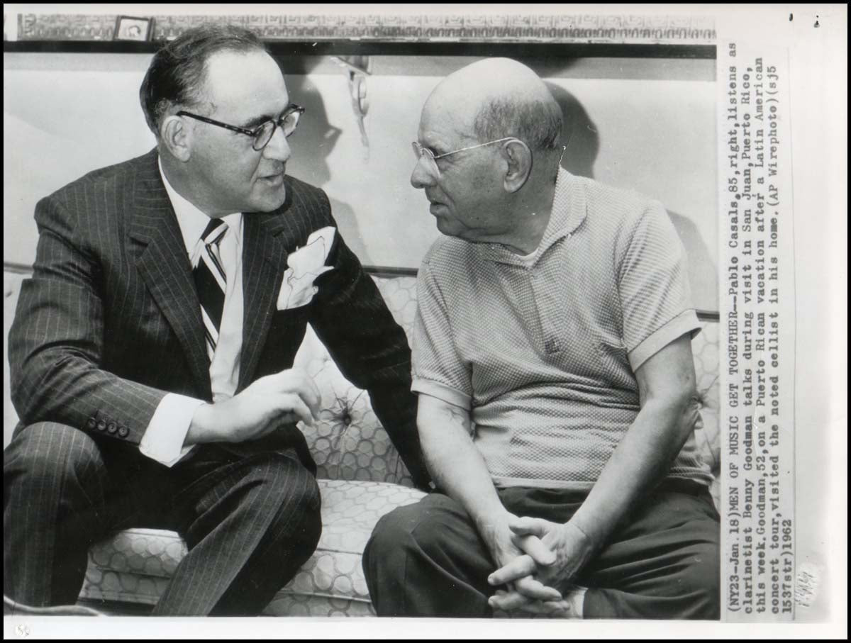 Casals, Pablo. (1876–1973) & Goodman, Benny. (1909–1986). Original 1962 Press Photograph.