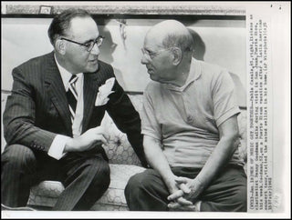 8 x 10 inch press photo of Spanish cellist and conductor Pablo Casals with clarinetist Benny Goodman. Dated January 18, 1962 on the verso and in fine condition.