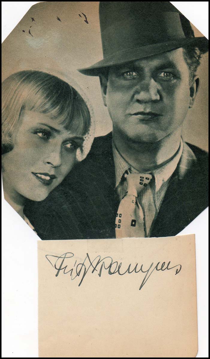 [Hollywood] Jannings, Emil. (1884 - 1950). Signed Photograph. Signed halftone photograph of the Swiss actor and the first winner of the Academy Award for Best Actor. With the advent of sound films, his thick accent ended his career. He returned to Europe and became an enthusiastic supporter of the Nazis, starring in several propagandistic films.
