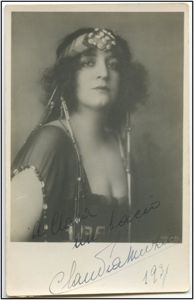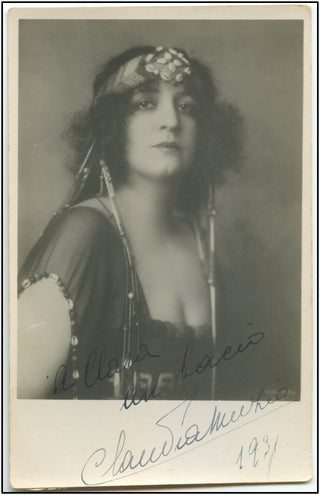 Muzio, Claudia. (1889–1936). Signed Photograph as Aida. Magnificent signed image of the great soprano wearing an elaborate headdress. 8.5 X 13.5 cm.