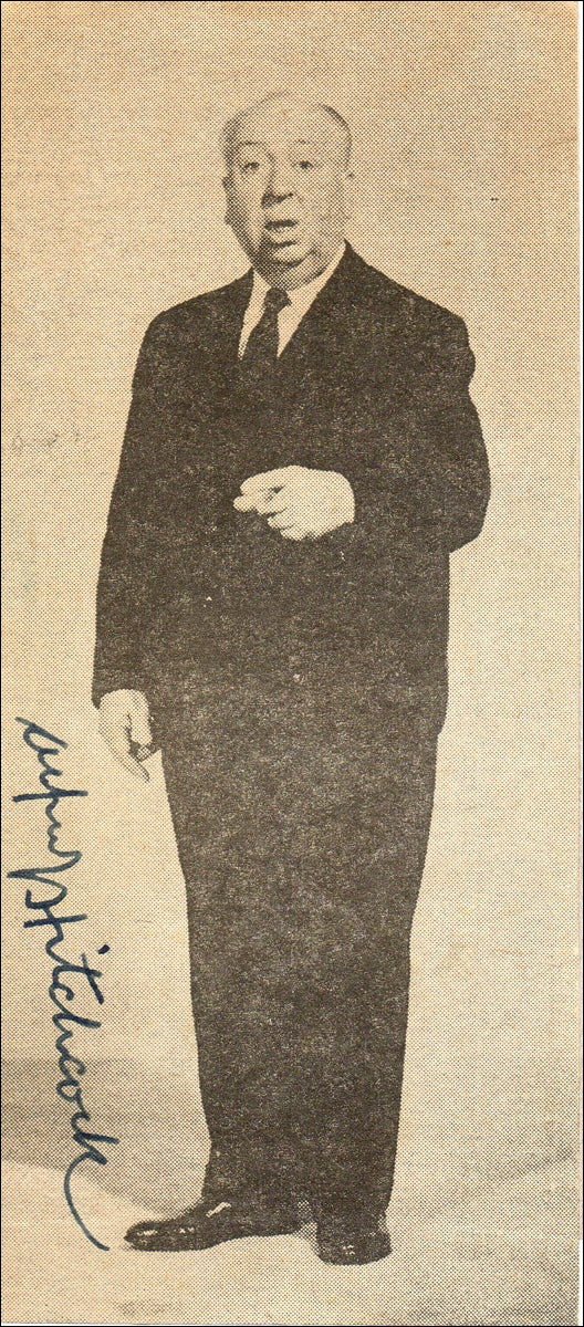 Hitchcock, Alfred. (1899 - 1980). Signed Newspaper Photograph.