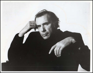 Vintage press photograph of the pianist in a contemplative pose. 10 x 8 inches. Fine, with later newspaper clippings affixed to verso.