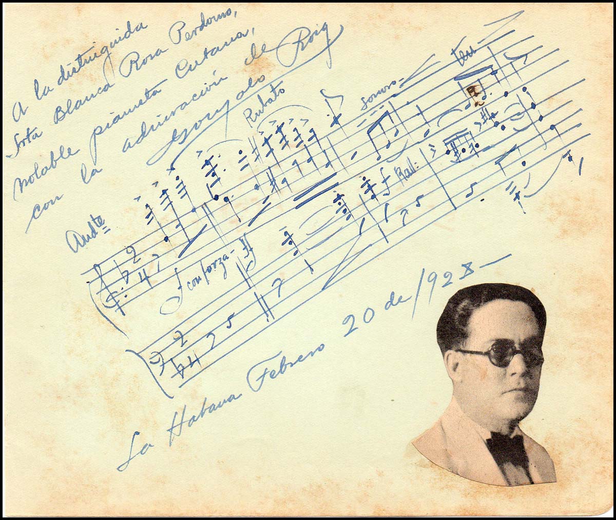 [Cuban Music] Roig, Gonzalo. (1890 - 1970). Autograph Musical Quotation.