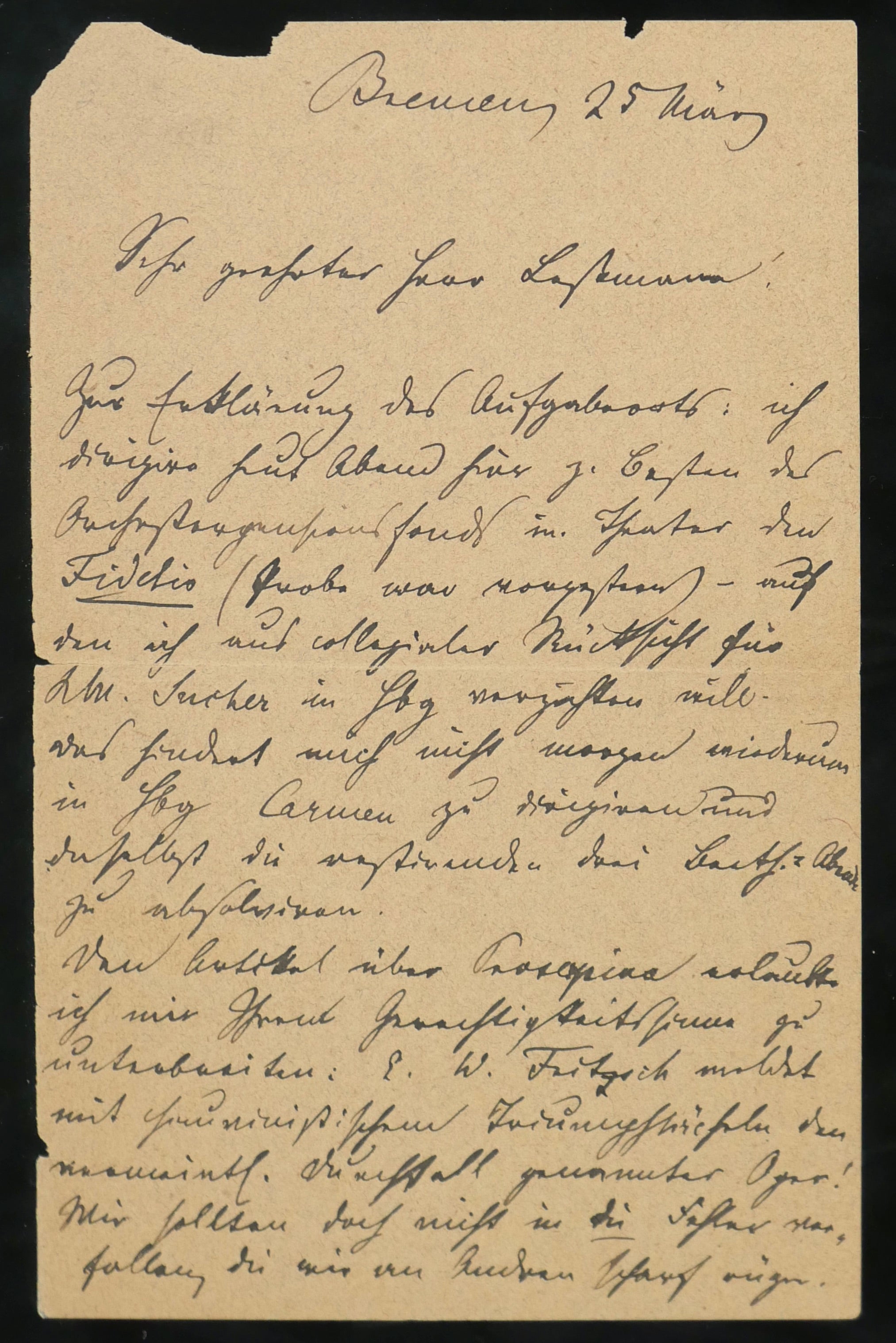morgen wiederum in H[am]b[ur]g Carmen zu dirigieren und daselbst die restirenden [?]