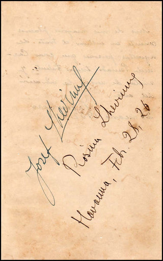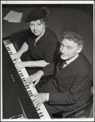 Lhevinne, Josef. (1874 - 1944) & Lhevinne, Rosina. (1880 - 1976). Autograph Signatures and Original Photograph. Autograph signatures of the great pianists together on a single sheet, obtained in Havana, Cuba in 1926. Tother with an original 1939 8 x 10 inch doubleweight photograph, showing them together at the keyboard.