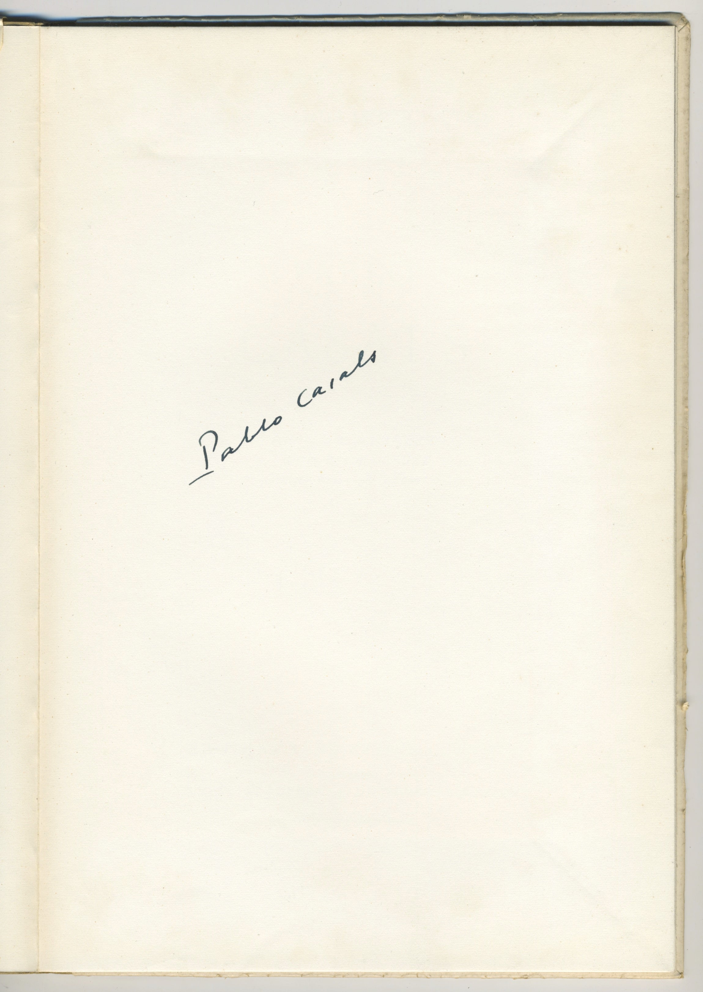 Casals, Pablo. (1876–1973). Les Grands Interpretes - SIGNED. Geneva: Editions Kister. 1955. First edition. A magnificent book of gravure photographs of the important cellist, boldly signed with his name alone on the first free endpage. 31 pages, of which 16 are photographs. Edges lightly chipped, overall fine.