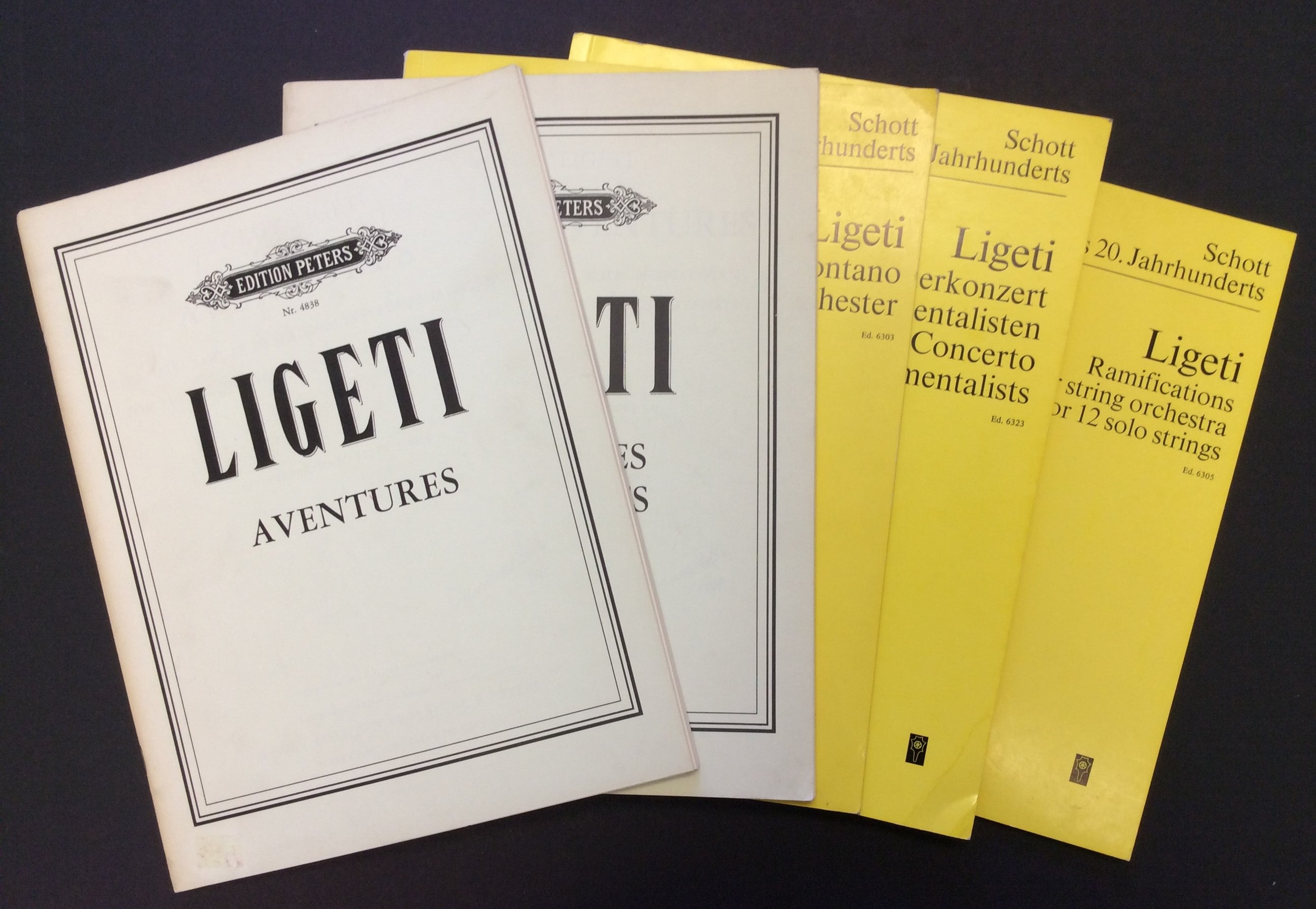 A small collection of five first editions by the important twentieth-century composer, including his works Aventures and Nouvelles Aventures for singers and small instrumental ensemble, published by Peters, and the orchestral works Ramifications, Kammerkonzert, and Lontano, published by Schott. These pieces represent some of the composer's most significant works on the 1960's and early 1970's. Some light wear, but overall the scores are in fine to very fine condition; details are listed below.