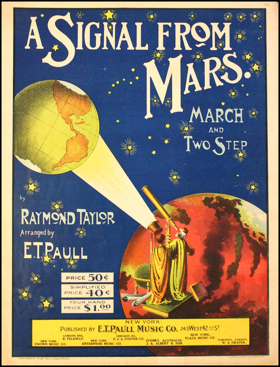 [Mars] Paull, E. T.. (1858 - 1924). A Signal From Mars. March and Two Step. . New York: E. T. Paull Music Co.. 1901. Illustrated cover; 3-7 pp. Very good.