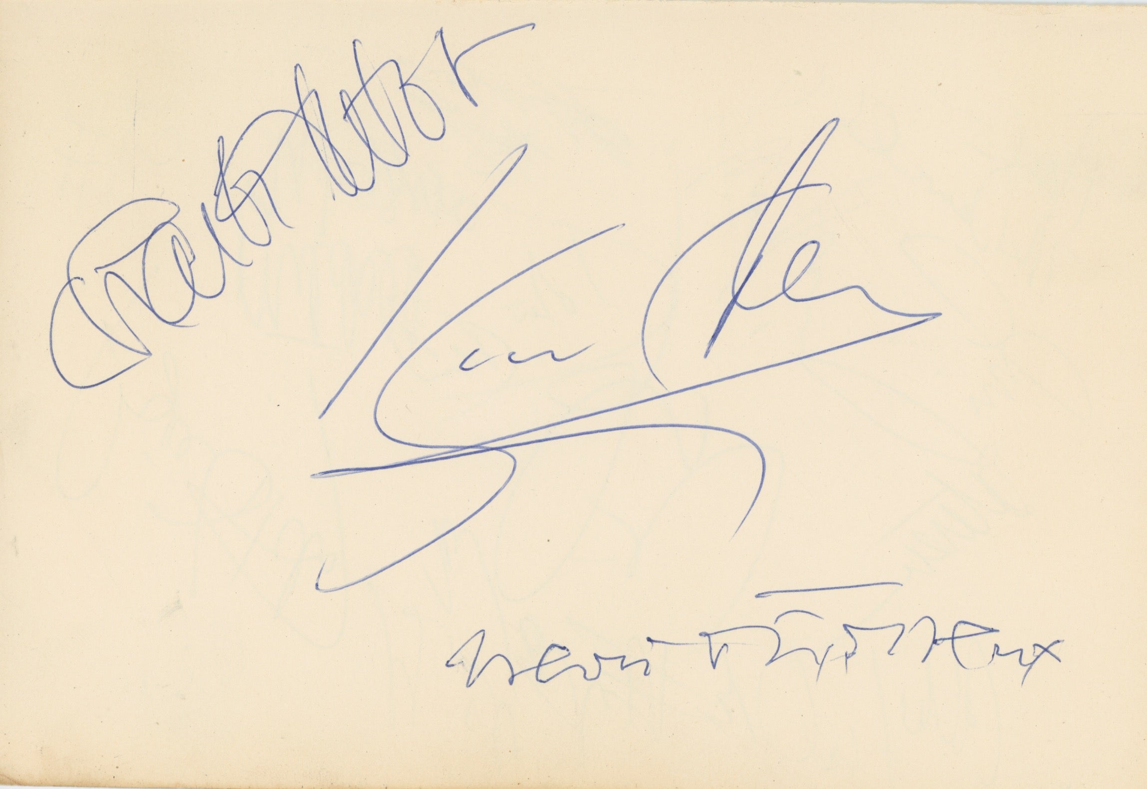Bold autograph signatures of the composer, violinist and conductor on an 8 x 5 inch sheet, obtained at performance of the Dutilleux concerto, entitled L'arbre des songes ["The Tree of Dreams"], a 1985 commission by Stern himself. Dutoit conducted the world premiere recording of the work with Stern. Mild toning around the edges, a number of unidentified signatures on the verso, fine.