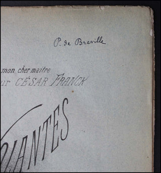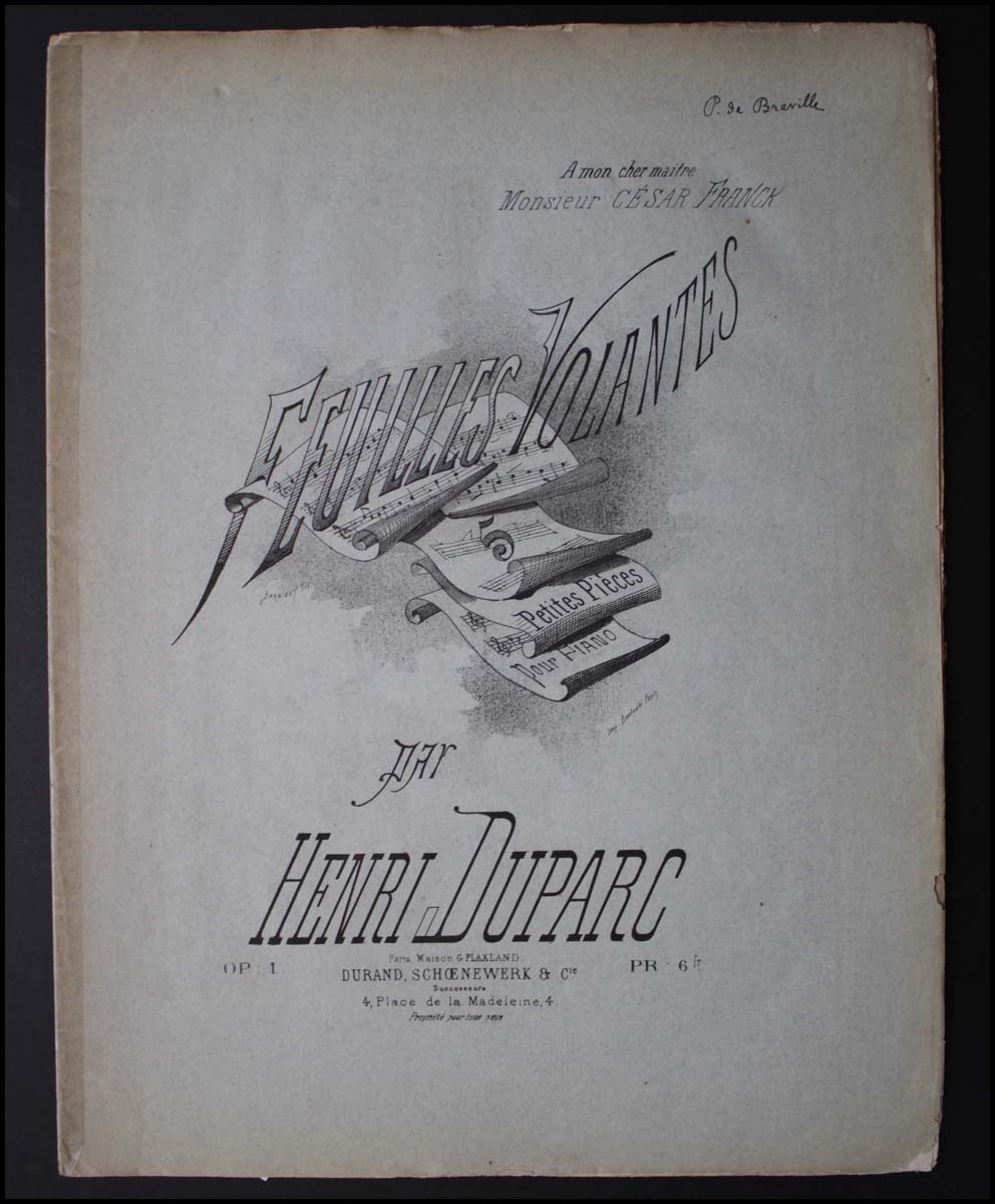 Upright folio. 10 pp. Engraved. [PN] G.F.1019. Rare first edition of the first Opus of Duparc, this copy signed by the French composer Pierre de Bréville (1861 - 1949) on the upper right corner of the illustrated front wrapper. In very fine condition, one of very few publications in the composer's lifetime.
