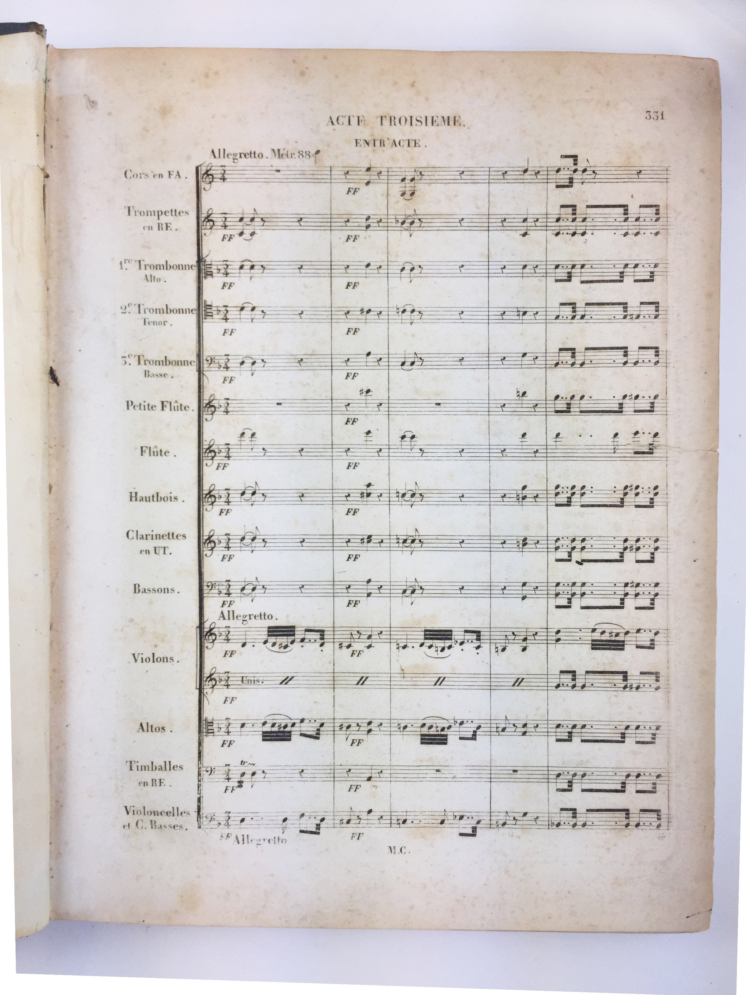 Carafa, Michele. (1787 - 1872). Masaniello : ou le pecheur napolitain : drame historique en 4 actes. [Paris]: self-published. [1827]. Second volume only, 331- 551 pp. Engraved. [PN] M.C. (the initials of the composer). A few tears to margins, scattered browning or foxing, period boards scuffed but sturdy.