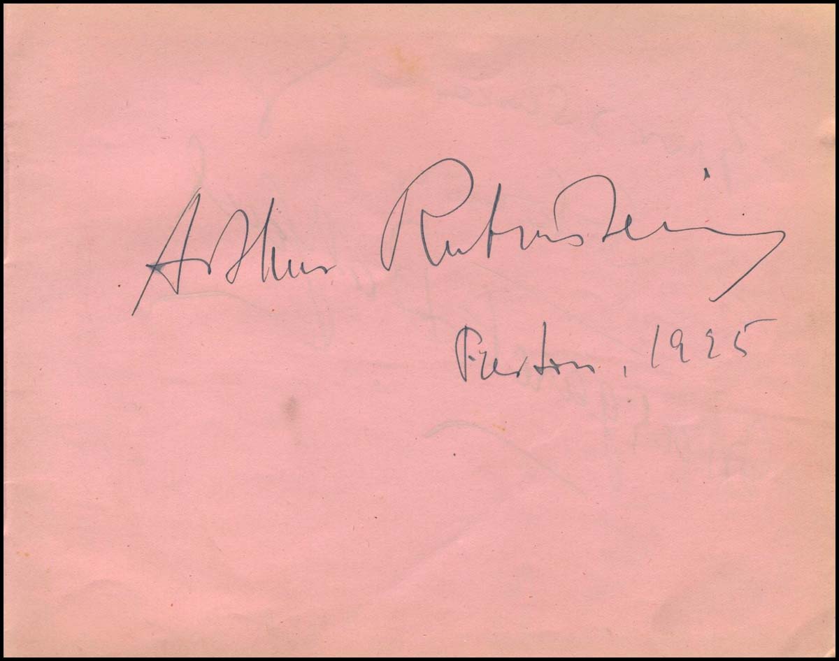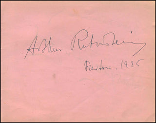 Bold autograph signatures from the great pianists. Rubinstein's dated 1925, and on the verso, signed "your sincerely Solomon," and beneath "Margaret Balfour." 7.5 x 6 inches and in fine condition.