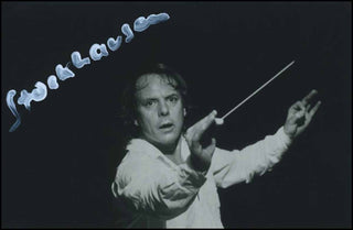 Signed original black and white photograph boldly signedby the influential and controversial German composer. Signed boldly in white ink and in very fine condition. 4 x 6 inches.