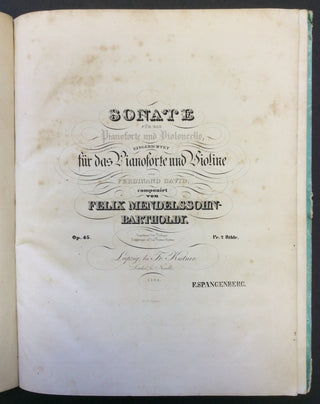 Sonate für das Pianoforte und Violoncello, eingerichtet für das Pianoforte und Violine von Ferdinand David, componirt von Felix Mendelssohn-Bartholdy. Opus 45. Pr. 2 Rthlr. Leipzig, bei Fr. Kistner. London, bei Novello [1839?]. [PN] 1215.1229.