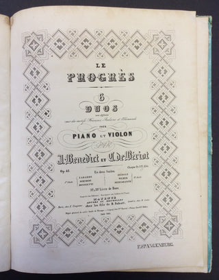 Le progrès : 6 duos non difficiles sur des motifs français, italiens et allemands, pour piano et violon. Op. 41. Chaque Pr. 2 fl. 15 kr. 1re Suite: Labarre, Schubert Donizetti. Mayence, Anvers et Bruxelles: chez les fils de B. Schott, [184-?]. [PN] 7004.1