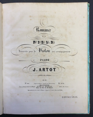 Romance de Field, Transcrite pour le violon avec accompagnement de piano par J. Artot, op. 20. Pr: 54 kr. Mayence, Anvers et Bruxelles: chez les fils de B. Schott, [18--?]. [PN] 8043.
