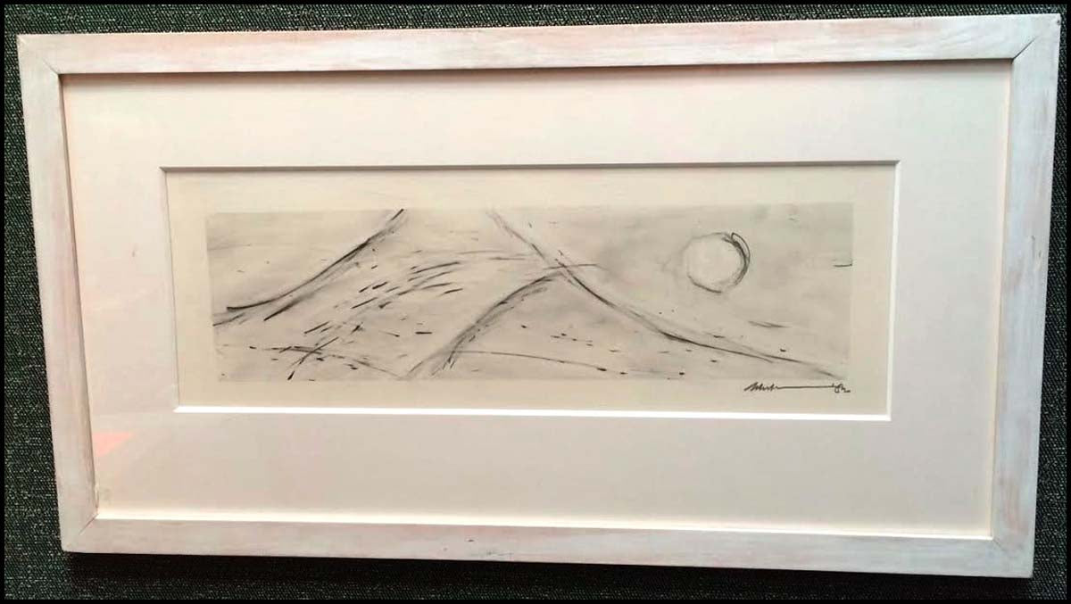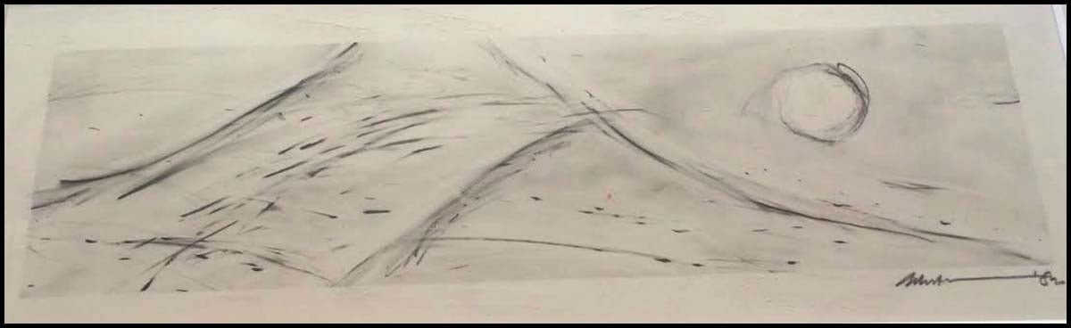 [Glass, Philip. (b. 1937)] Wilson, Robert. (b. 1941). The CIVIL warS, Act V, Scene C - ORIGINAL DRAWING. Signed and dated "Robert W... '82" in pencil l.r., identified on a label from Paula Cooper Gallery, New York, affixed to the backing. Graphite on paper, sight size 7 1/4 x 21 1/2 in. (18.4 x 54.6 cm), framed. Surface abrasions to the paper in the margins, otherwise in fine condition. Provenance: Sotheby's New York, Arcade, Modern and Contemporary Paintings, Drawings and Sculptures, June 7, 1996, Sale 1545, Lot 343.