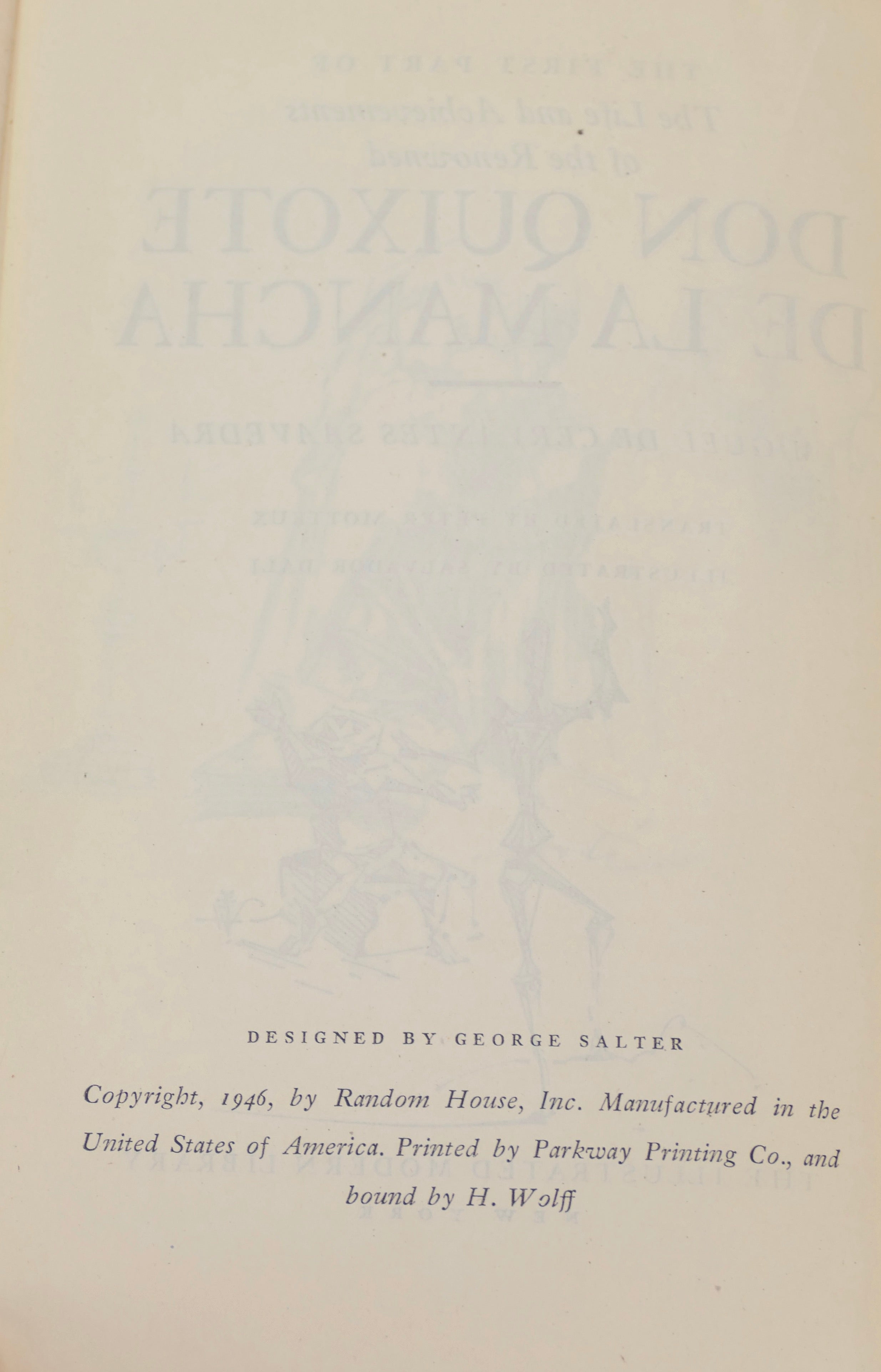 [Dalí, Salvador. (1904–1989)] Cervantes Saavedra, Miguel De.. The First Part of The Life and Achievements of the Renowned Don Quixote de la Mancha. New York: Random House/Modern Library. 1946. First Edition.