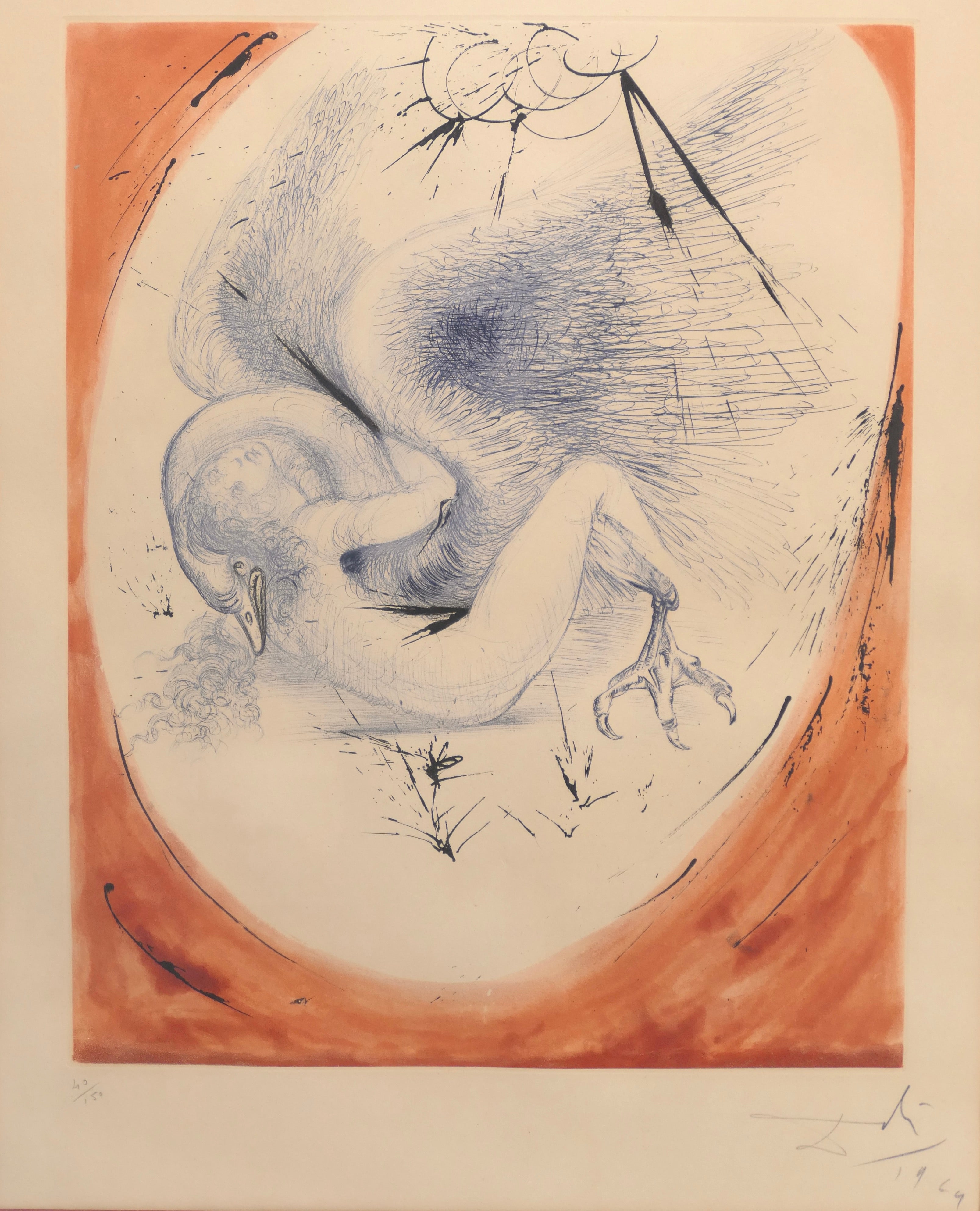 Color drypoint with etching and aquatint on Arches, 1963-65. Signed and numbered 43 of 150 impressions in pencil, lower margin. Printed by Pierre Argillet, Paris. Plate measures 505x405 mm; 20x16 inches, full margins. Overall 24.5 x 30.5 inches framed. Unexamined out of gold metal frame but in apparently fine condition, with light rippling to the paper. A very good impression. Michler-Löpsinger 126; Field 63-3 M.