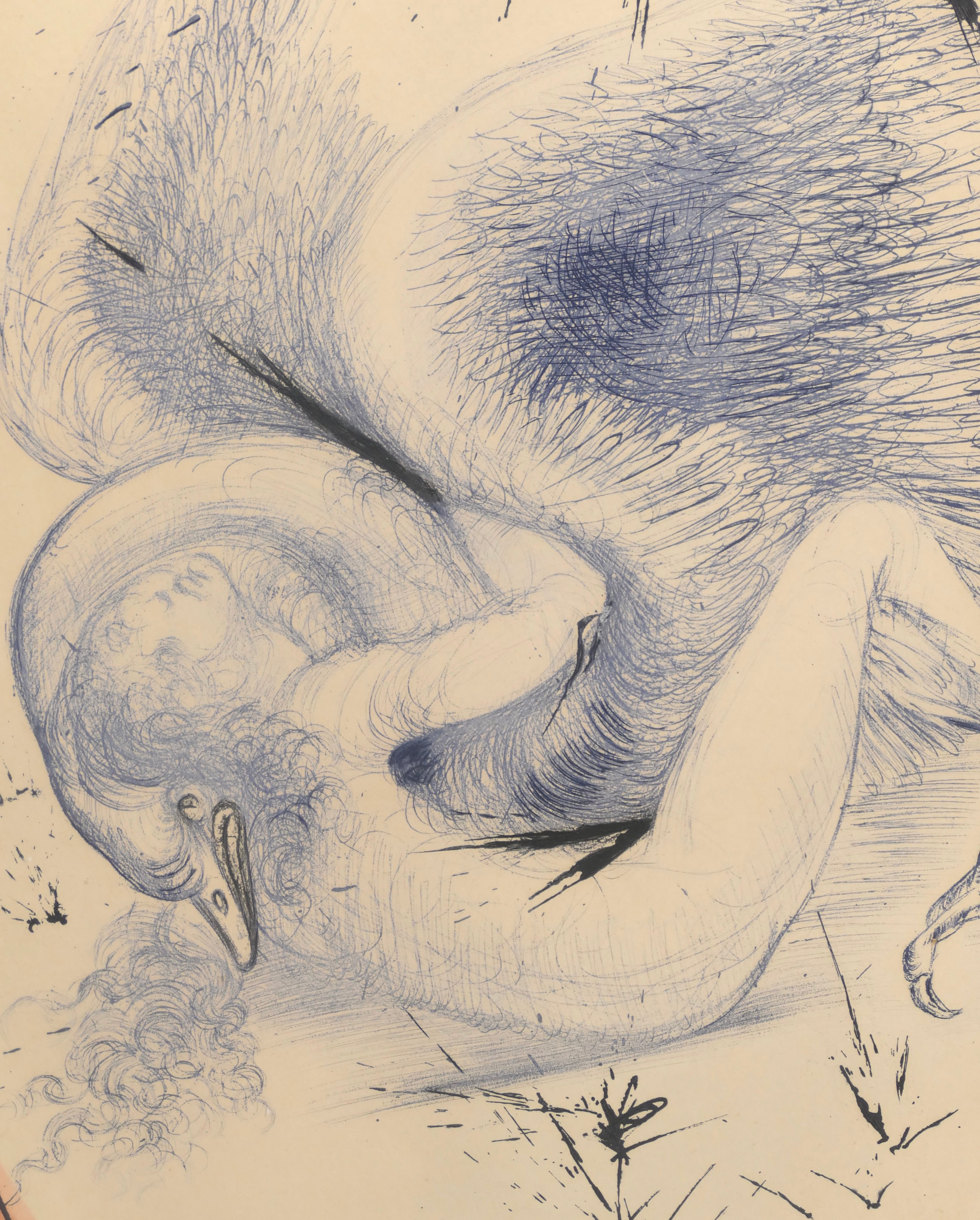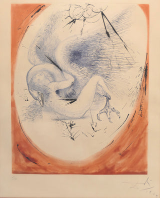 From Dali’s Mythologies, featuring Leda, the wife of Tyndareus, the King of Sparta, as seduced by Zeus disguised in the form of a swan. Leda then bore Zeus’ children Helen and Polydeuces at the same time as bearing her husband’s children Castor and Clytemnestra.
